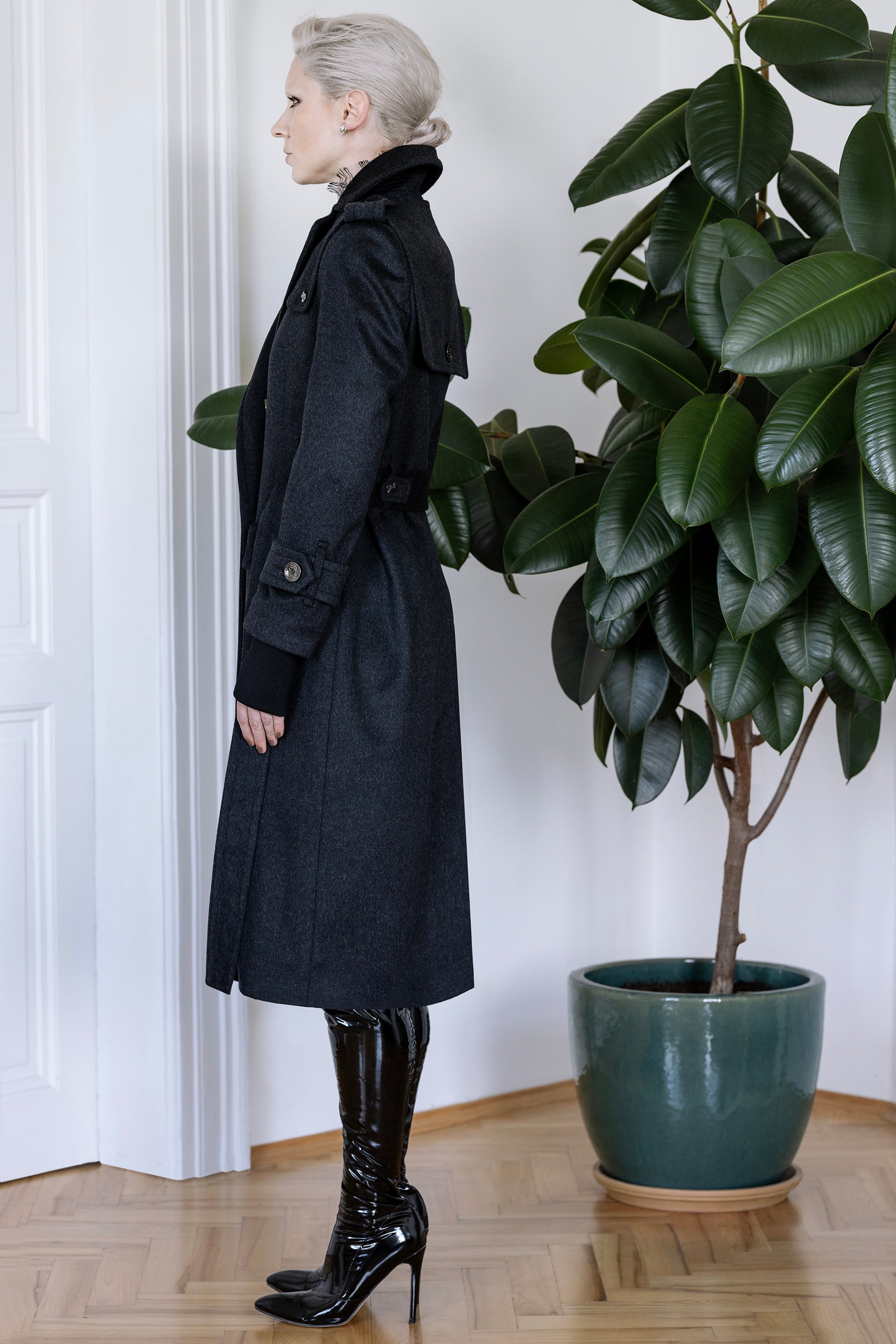 A coat for those who value form over noise, who find strength in understatement. Sculptural and serene, Ash is the calm center of any moment — a timeless layer for the woman who doesn’t need to prove she’s arrived.